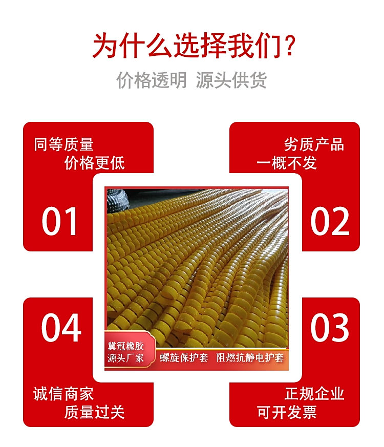 您好!欢迎来到冀冠 螺旋护套 阻燃抗静电保护套 产品特性 聚丙烯_河北冀冠橡胶制品有限公司