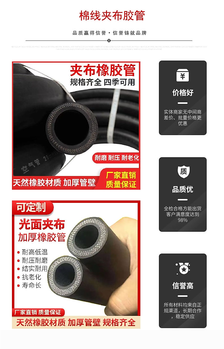 您好!欢迎来到耐磨夹布胶管 耐高温蒸汽橡胶管 耐油耐酸碱软管_河北冀冠橡胶制品有限公司